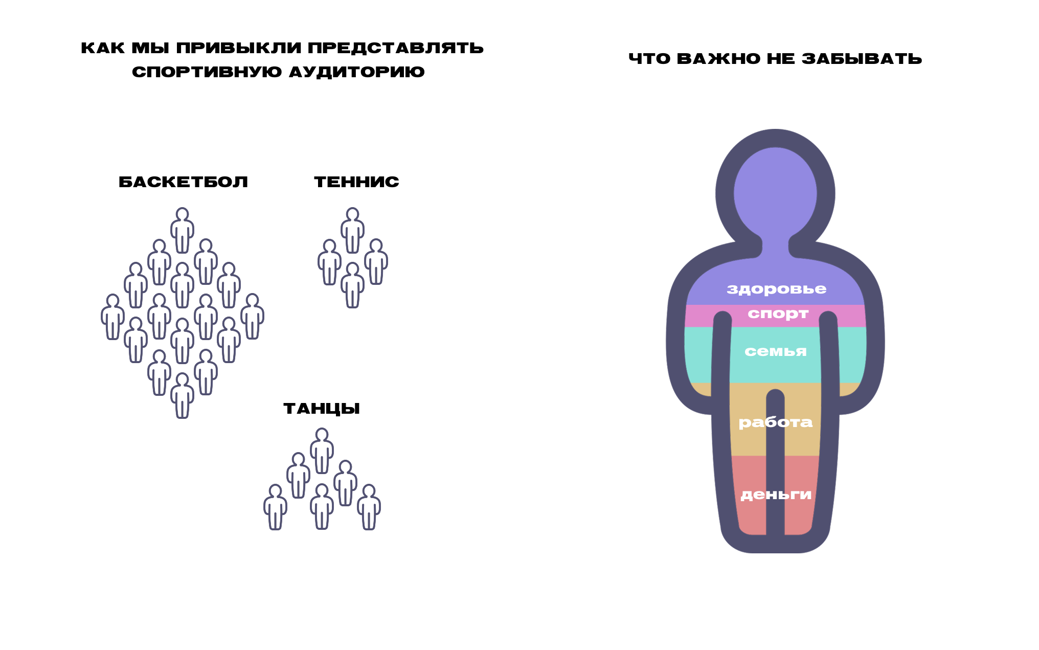 Понимание, что "спортивная аудитория" – это та же самая аудитория, что и все другие виды. 60,3% – это больше половины населения страны. Это не какие-то "волшебные, идеальные, спортивные" люди, которые живут в каких-то отдельных спортивных городах будещего. Нет. Спортивная аудитория – это обычная аудитория, это люди у которых есть жизни помимо спорта.